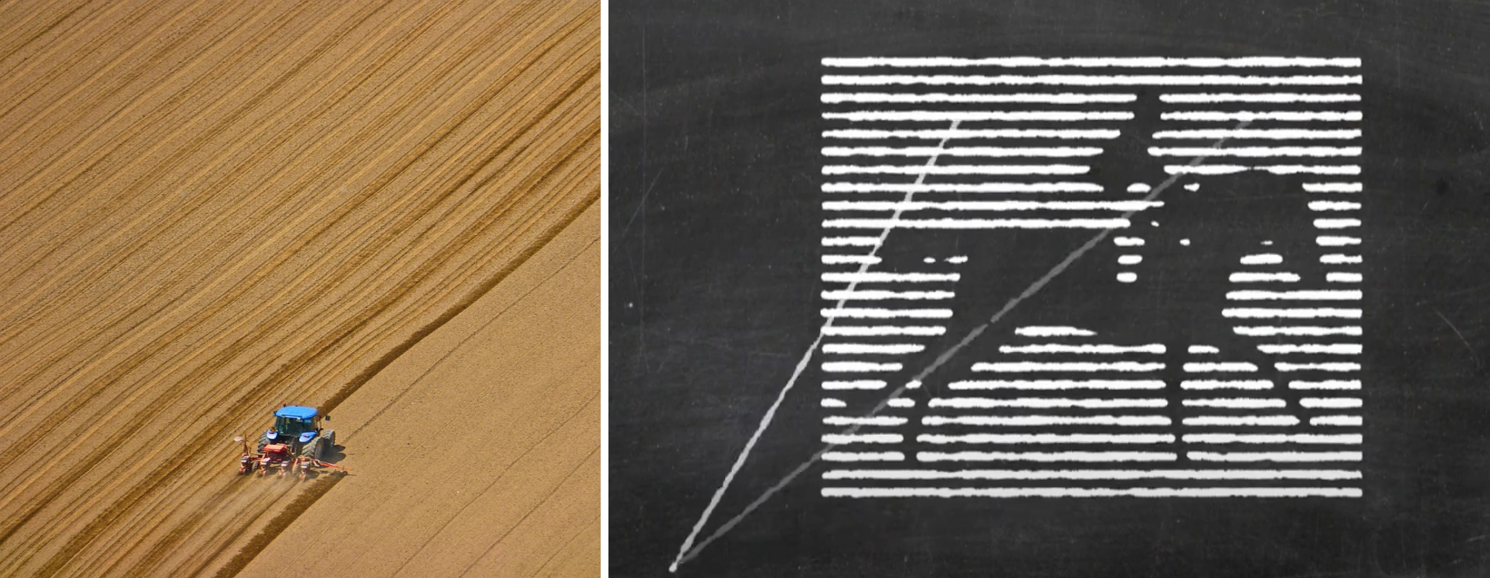 Farnsworth had something what the other inventors did NOT have… His two horse team & the task to plough the field. After seeing the ploughed field, he imagined how patterns can be created with parallel lines. If the lines are created fast enough so that humans perceive it as an image instead of lines was the spark that enabled the current TV